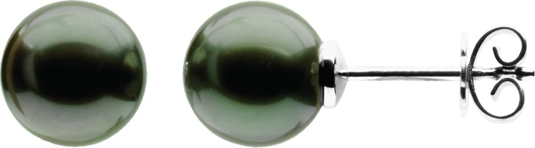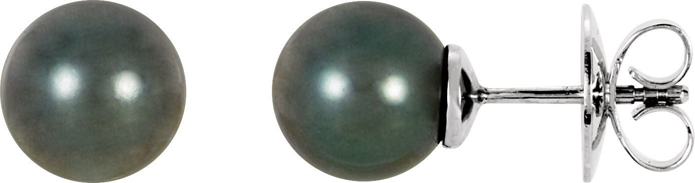 14K Palladium White 8 mm Cultured Gray Tahitian Pearl Earrings