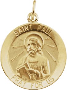 14K Yellow 18 mm Round St. Paul the Apostle Medal