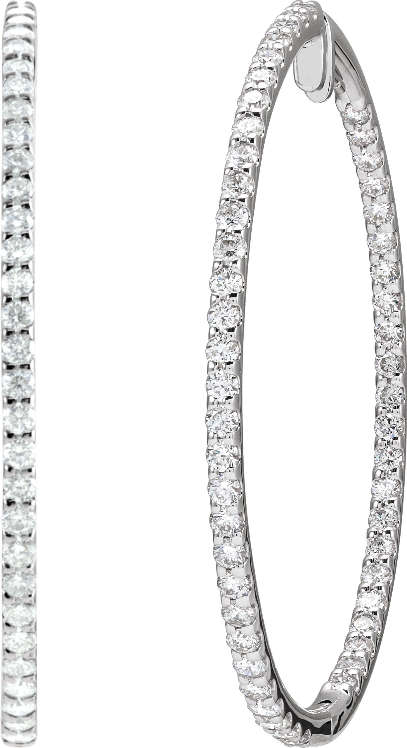 14K White 5 CTW Natural Diamond Inside-Outside 51 mm Hoop Earrings