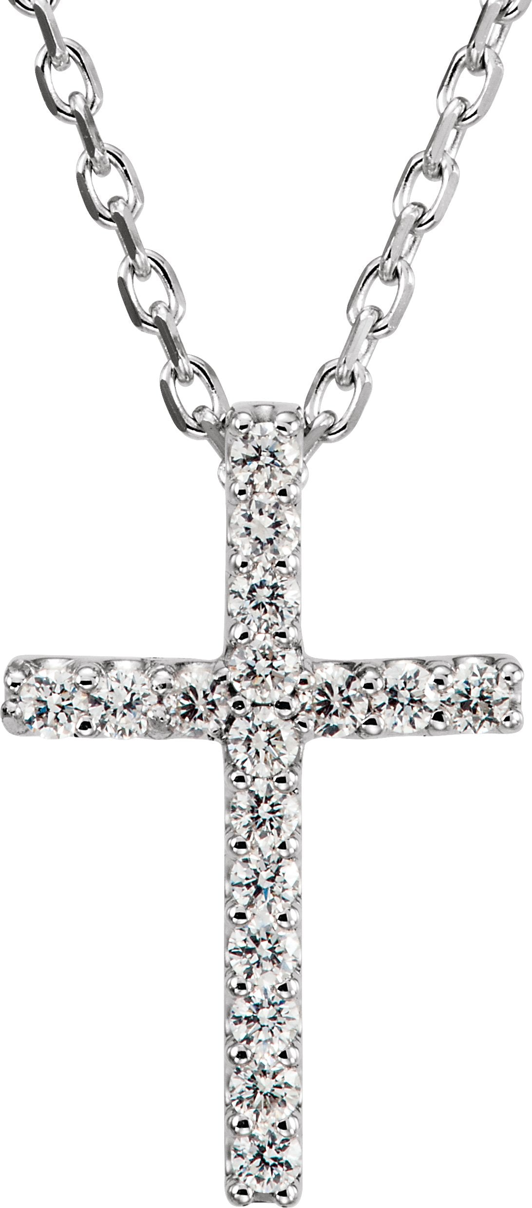 14K White .06 CTW Natural Diamond Petite Cross 16" Necklace