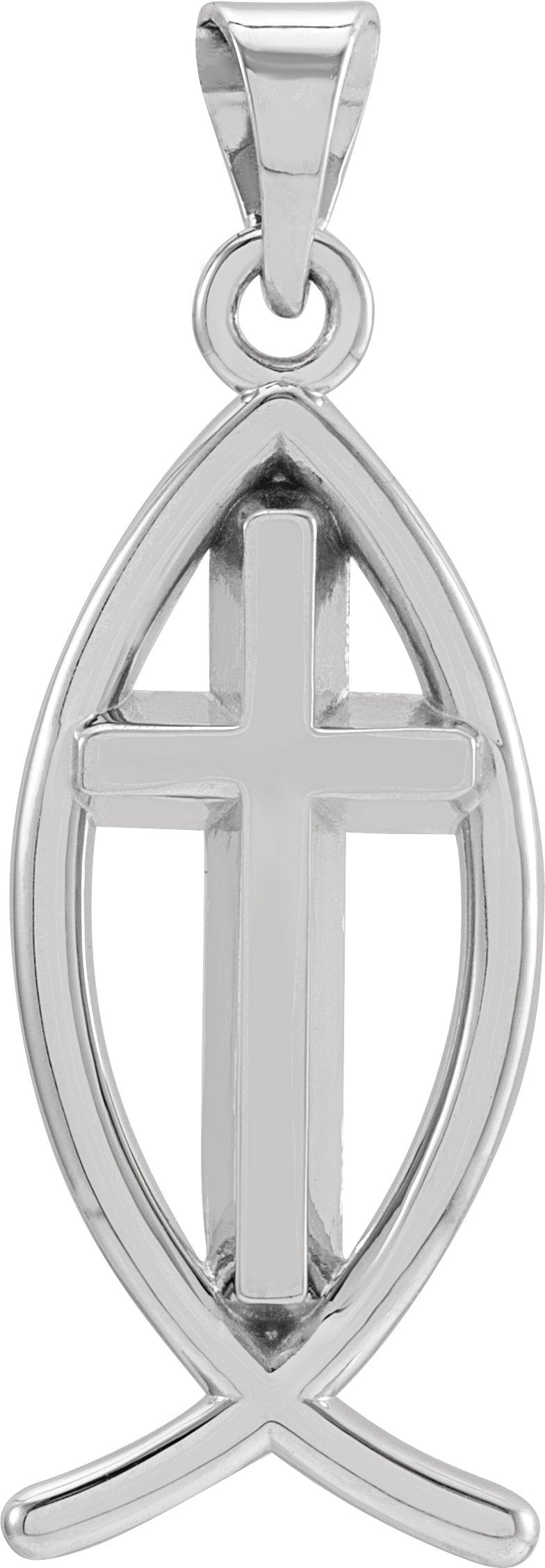 Sterling Silver 19x9 mm Fish with Cross Pendant