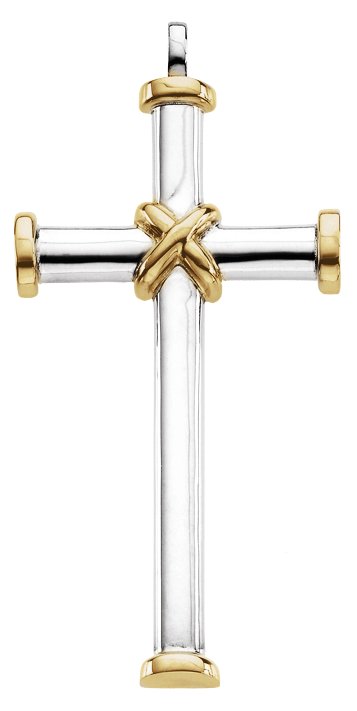 Sterling Silver & 14K Yellow 51x26.25 mm Cross Pendant