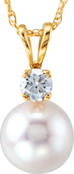 14K Yellow Cultured White Akoya Pearl & 1/10 CTW Natural Diamond 18" Necklace