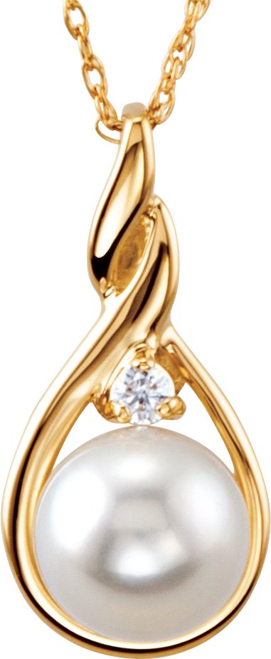 14K Yellow Cultured White Akoya Pearl & .03 CTW Natural Diamond 18" Necklace