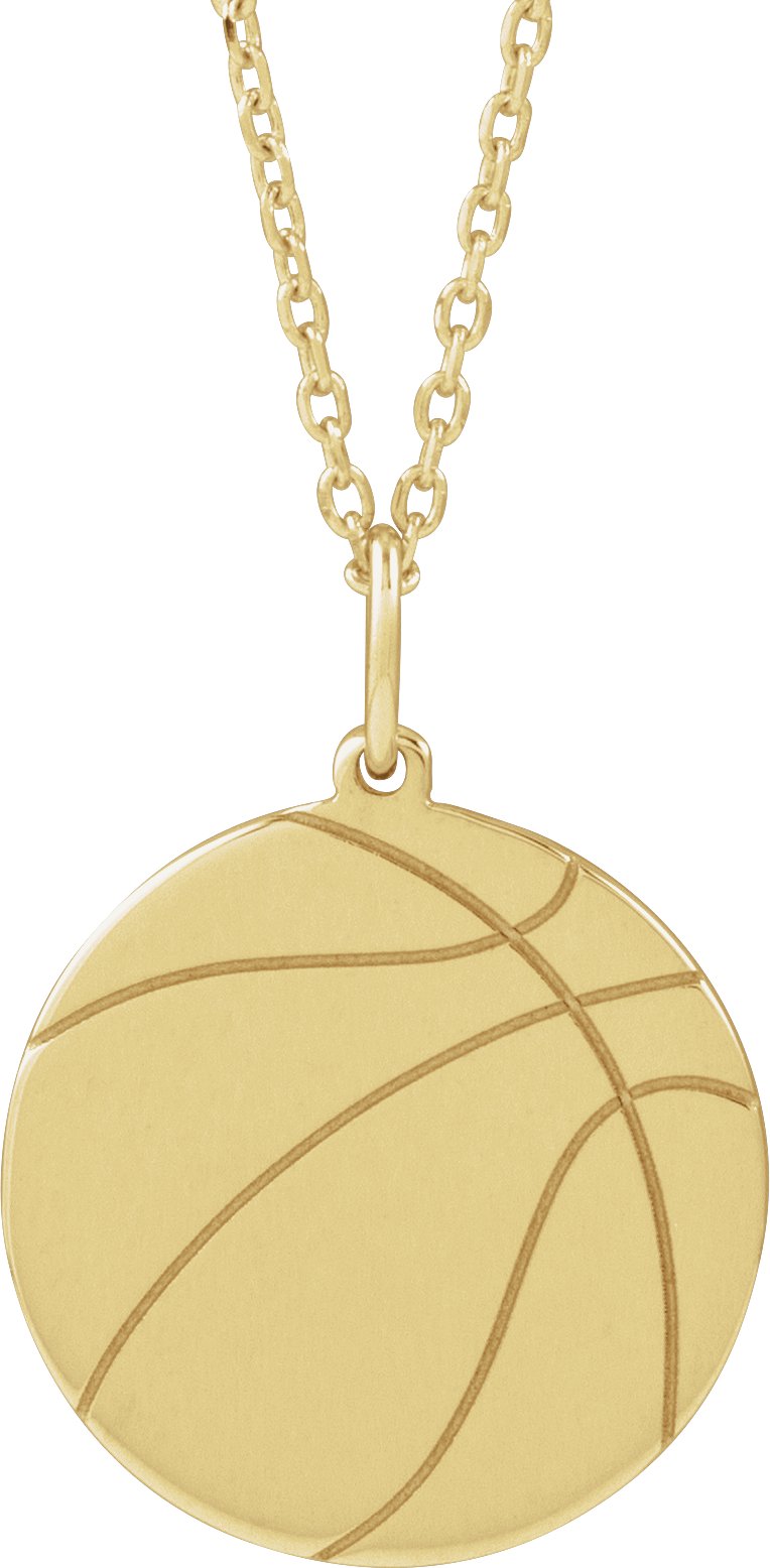 14K Yellow Engravable Basketball 16-18" Necklace