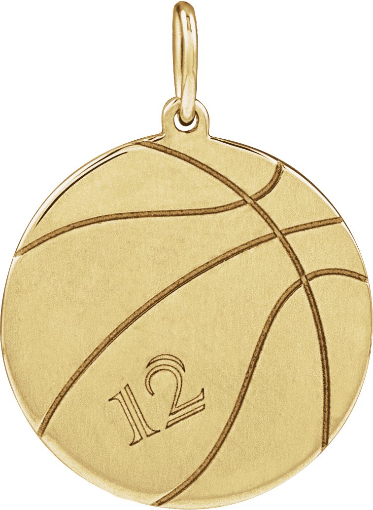 14K Yellow Engravable Basketball Pendant