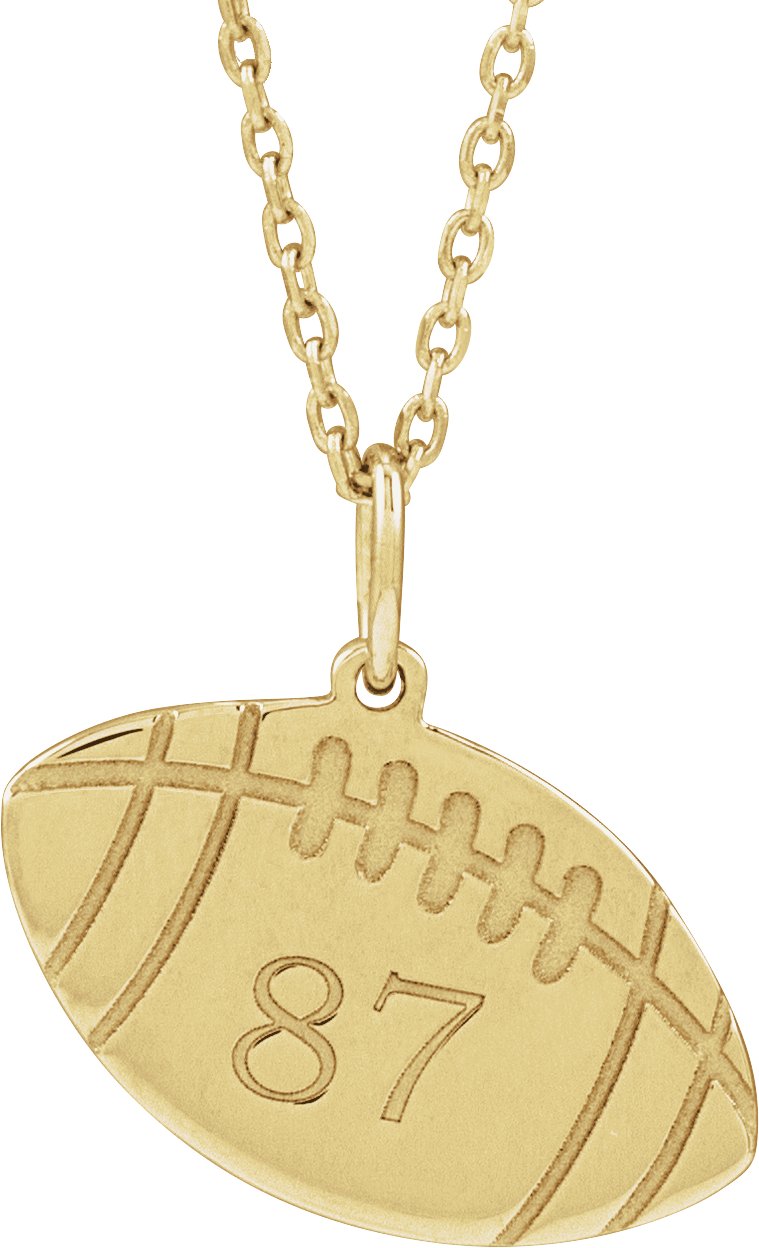 14K Yellow Engravable Football 16-18" Necklace