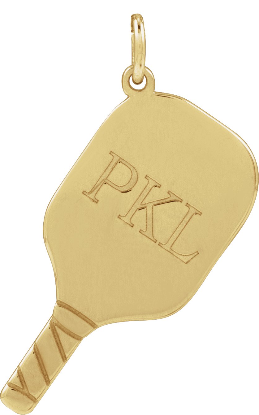 14K Yellow Engravable Pickleball Paddle Pendant