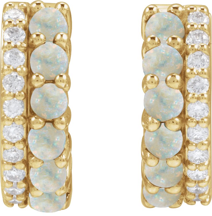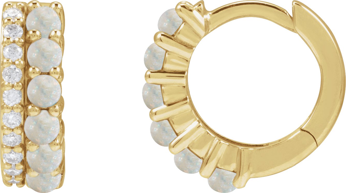14K Yellow Natural White Opal & 1/8 CTW Natural Diamond Huggie Hoop Earrings