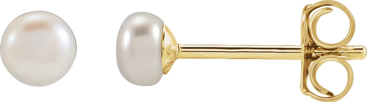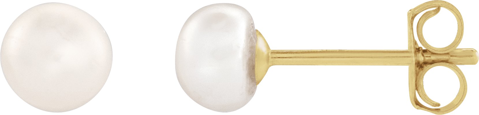 14K Yellow 4-4.5 mm Cultured White Freshwater Button Pearl Earrings