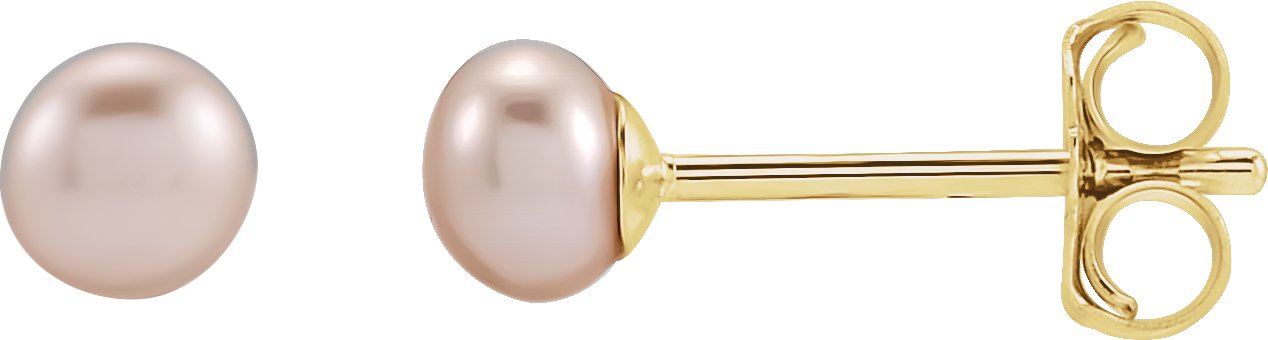 14K Yellow Cultured Pink Freshwater Pearl Earrings