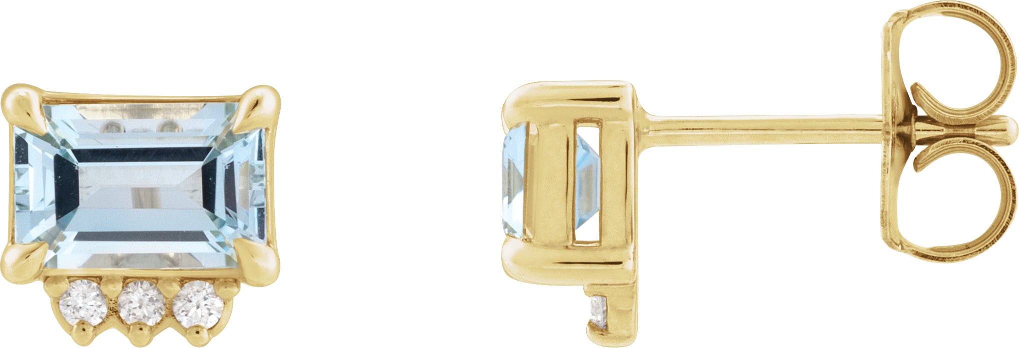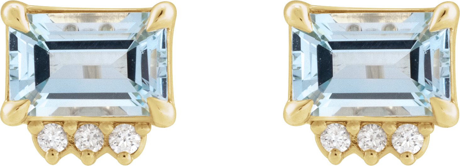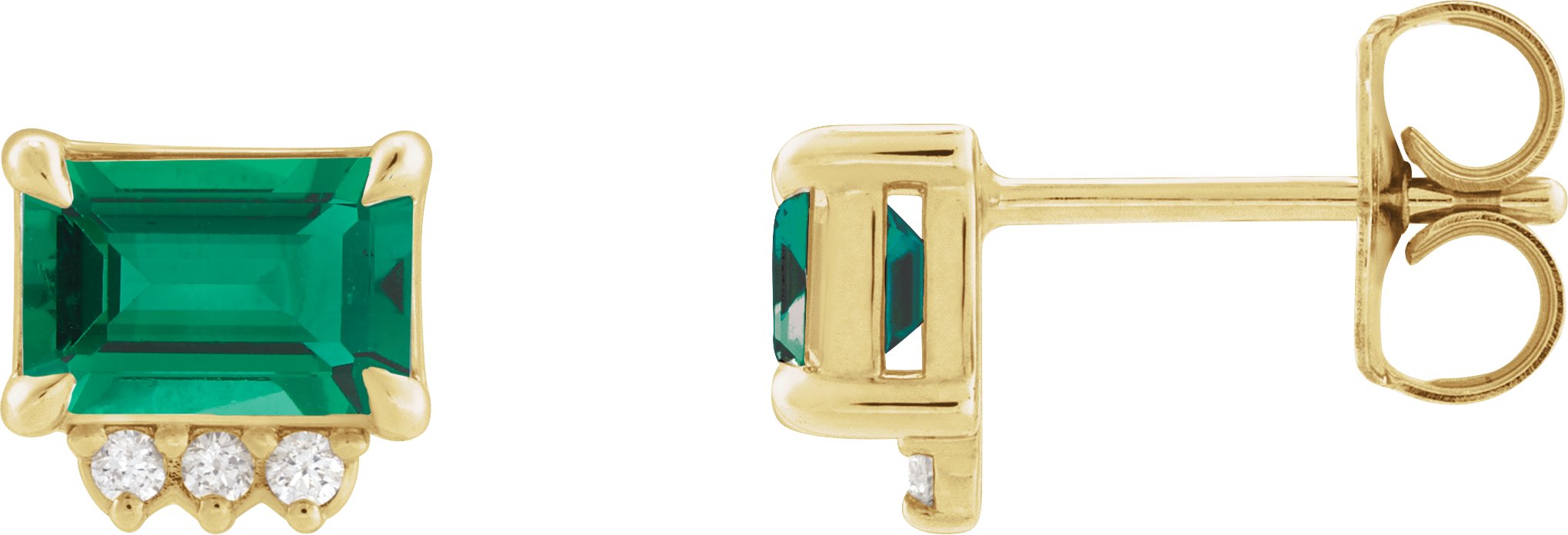 14K Yellow Lab-Grown Emerald & .04 CTW Natural Diamond Stud Earrings
