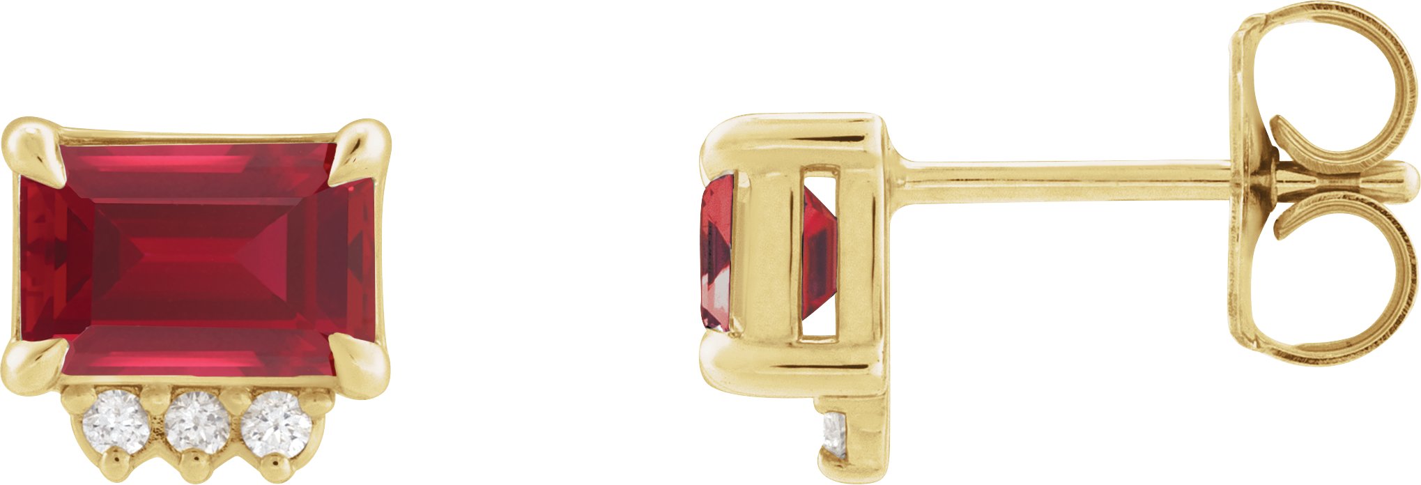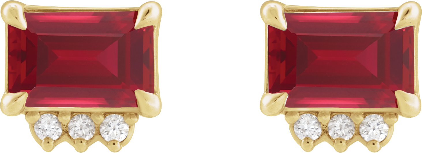 14K Yellow Lab-Grown Ruby & .04 CTW Natural Diamond Stud Earrings