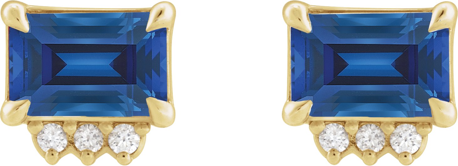 14K Yellow Lab-Grown Blue Sapphire & .04 CTW Natural Diamond Stud Earrings