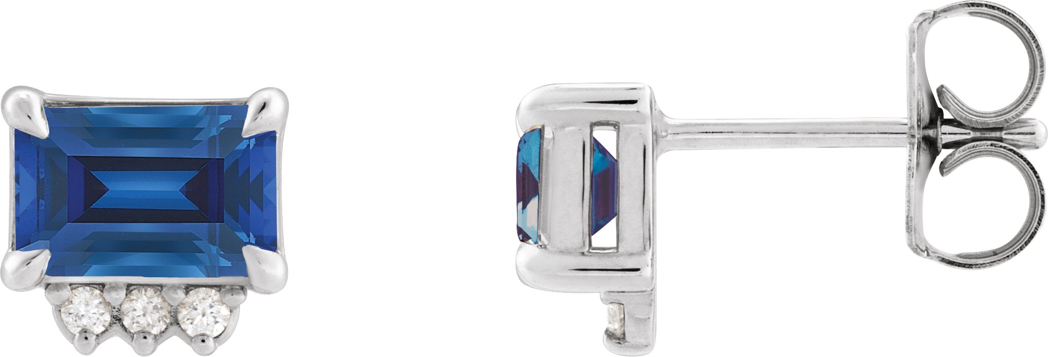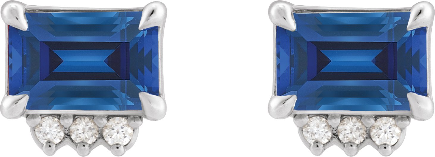 14K White Lab-Grown Blue Sapphire & .04 CTW Natural Diamond Stud Earrings