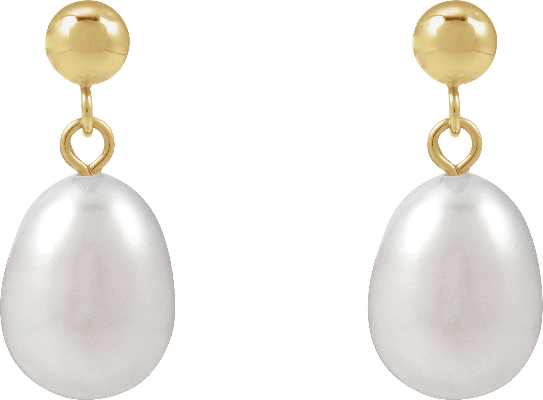 14K Yellow Cultured White Freshwater Pearl Earrings