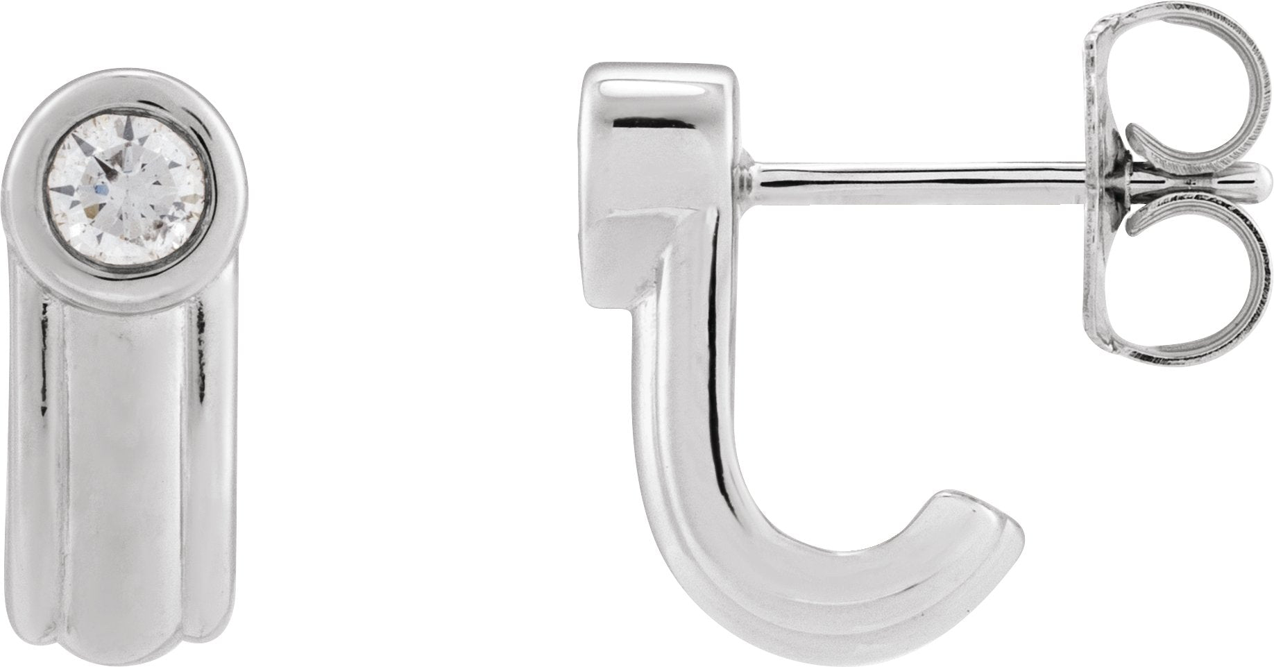 14K White 1/5 CTW Lab-Grown Diamond Solitaire J Hoop Earrings