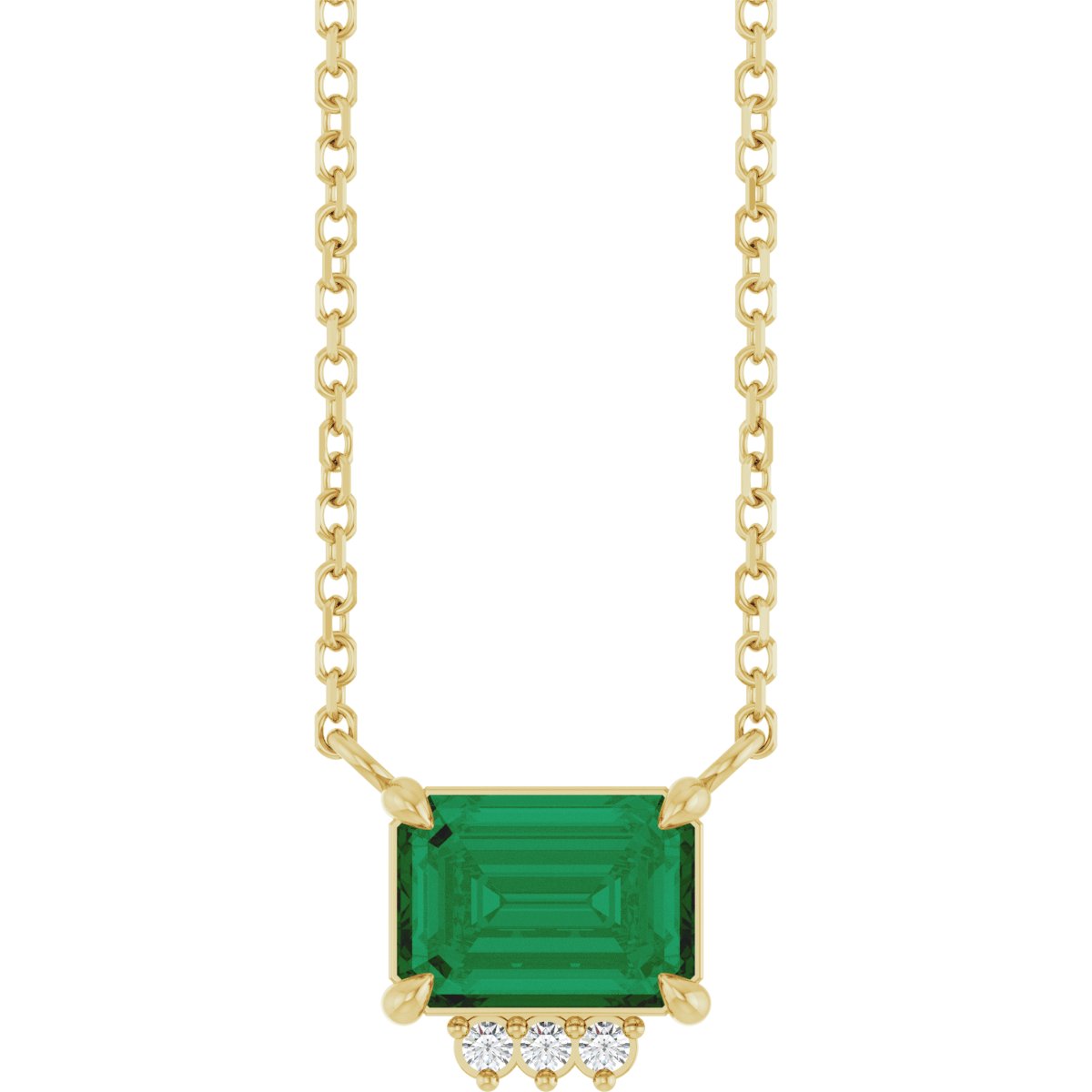 14K Yellow Lab-Grown Emerald & .025 CTW Natural Diamond 18" Necklace
