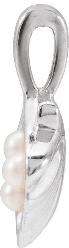 Sterling Silver 3-Stone Cultured White Seed Pearl Family Shell Pendant