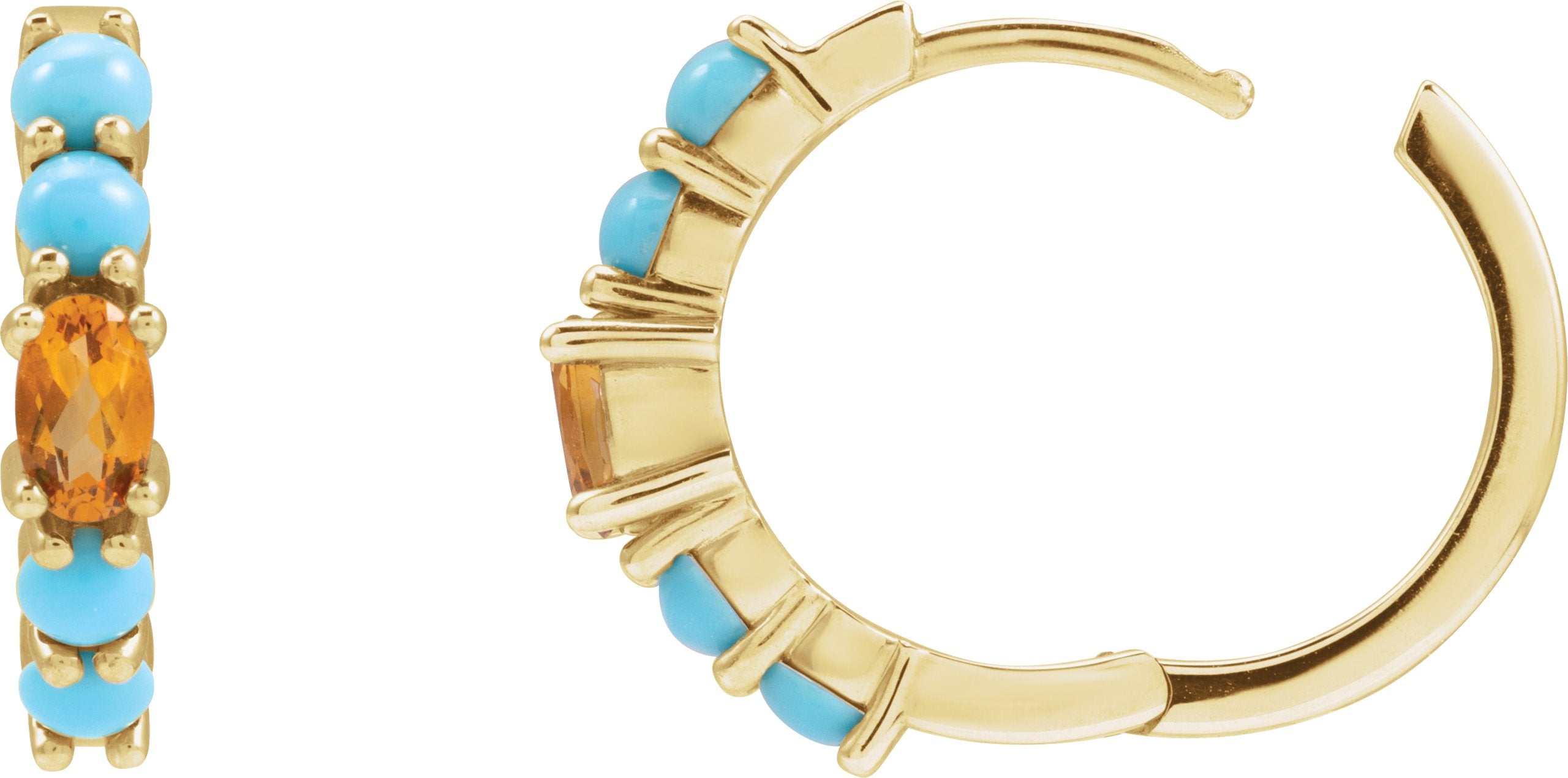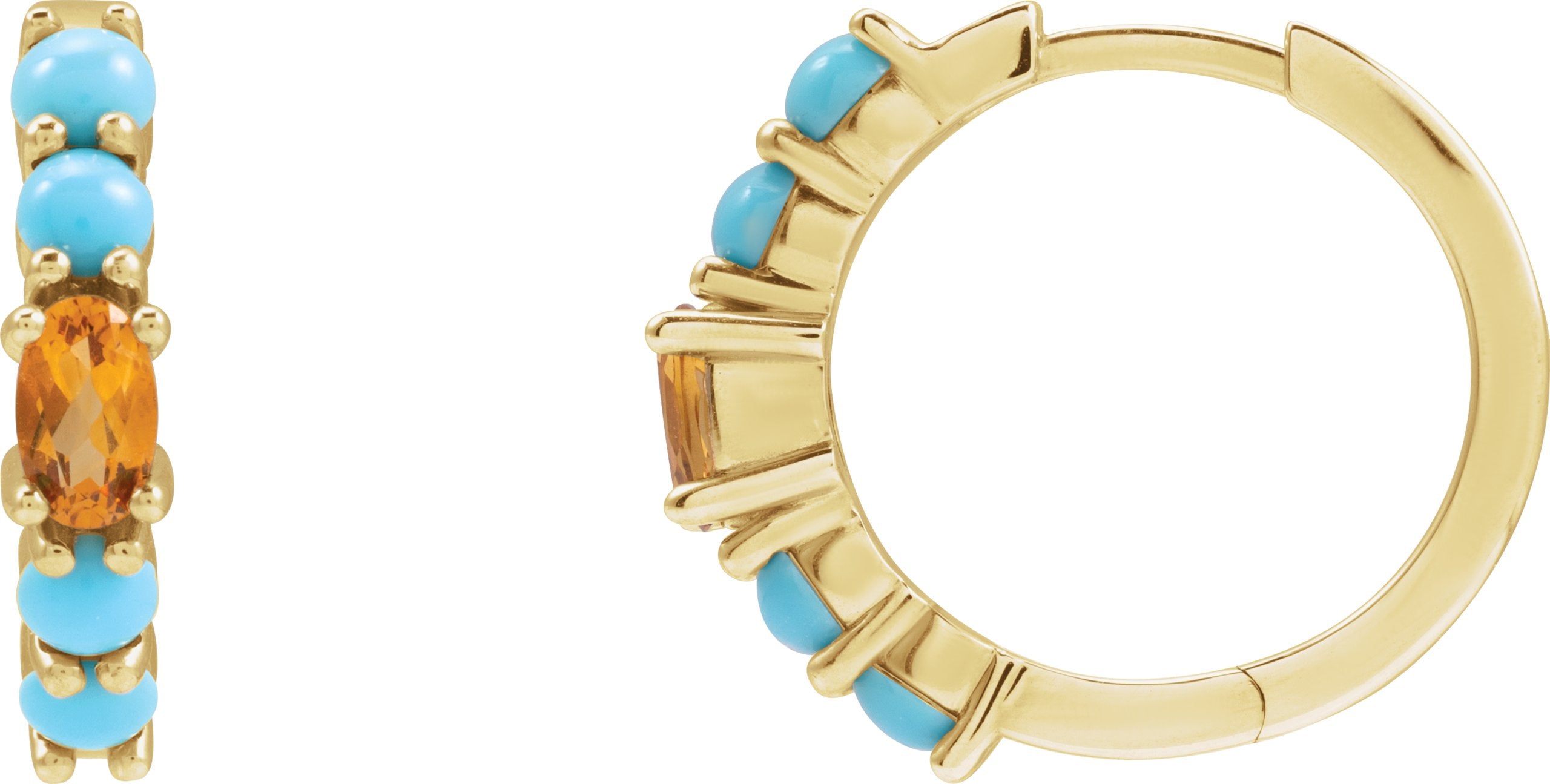 14K Yellow Natural Citrine & Natural Turqouise 19.6 mm Hoop Earrings