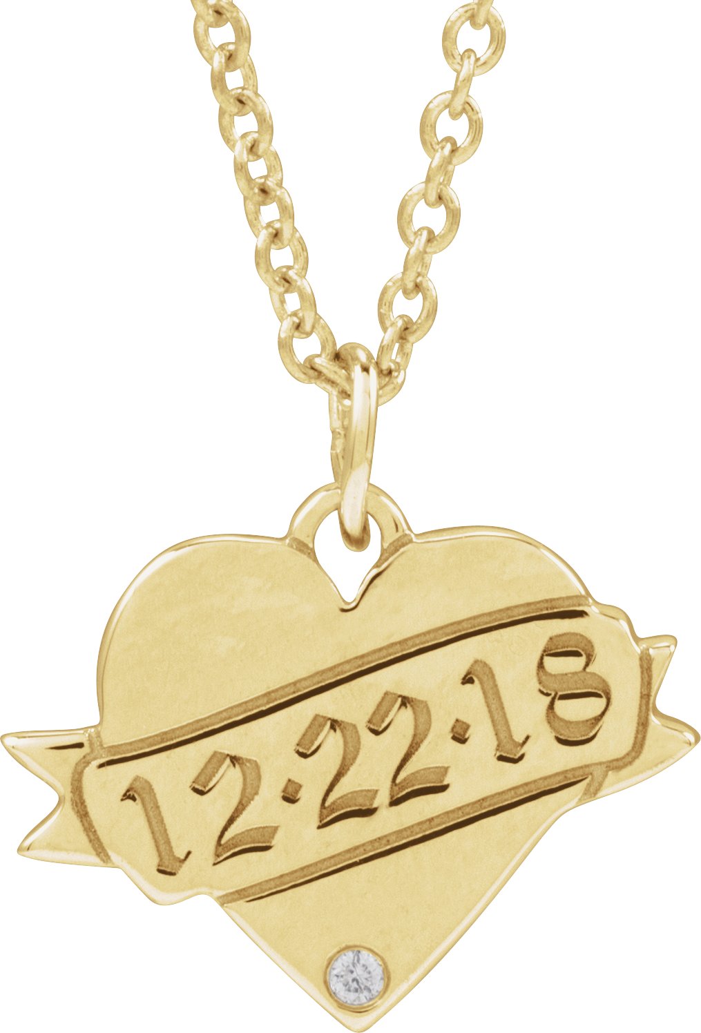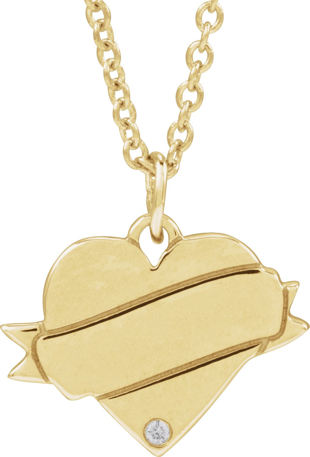 14K Yellow .005 CT Natural Diamond Engravable Heart 18" Necklace