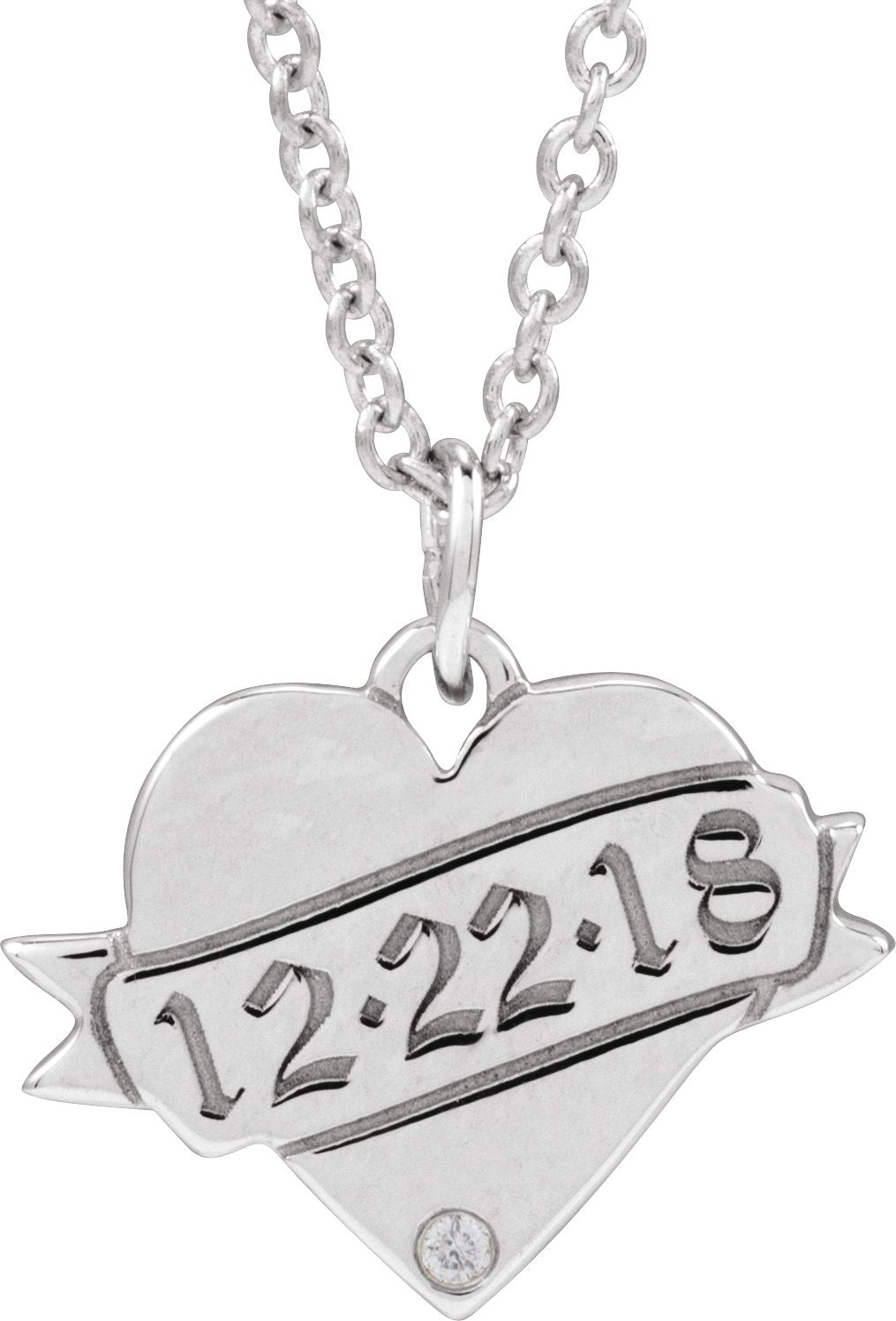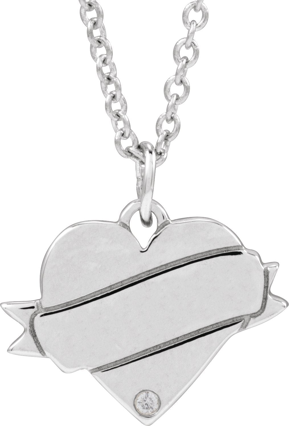 14K White .005 CT Natural Diamond Engravable Heart 18" Necklace