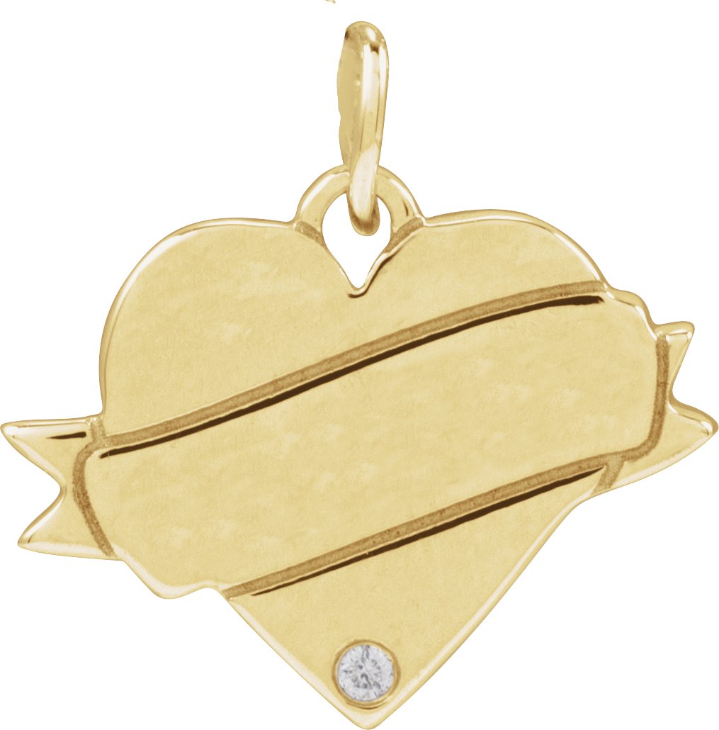 14K Yellow .005 CT Natural Diamond Engravable Heart Pendant