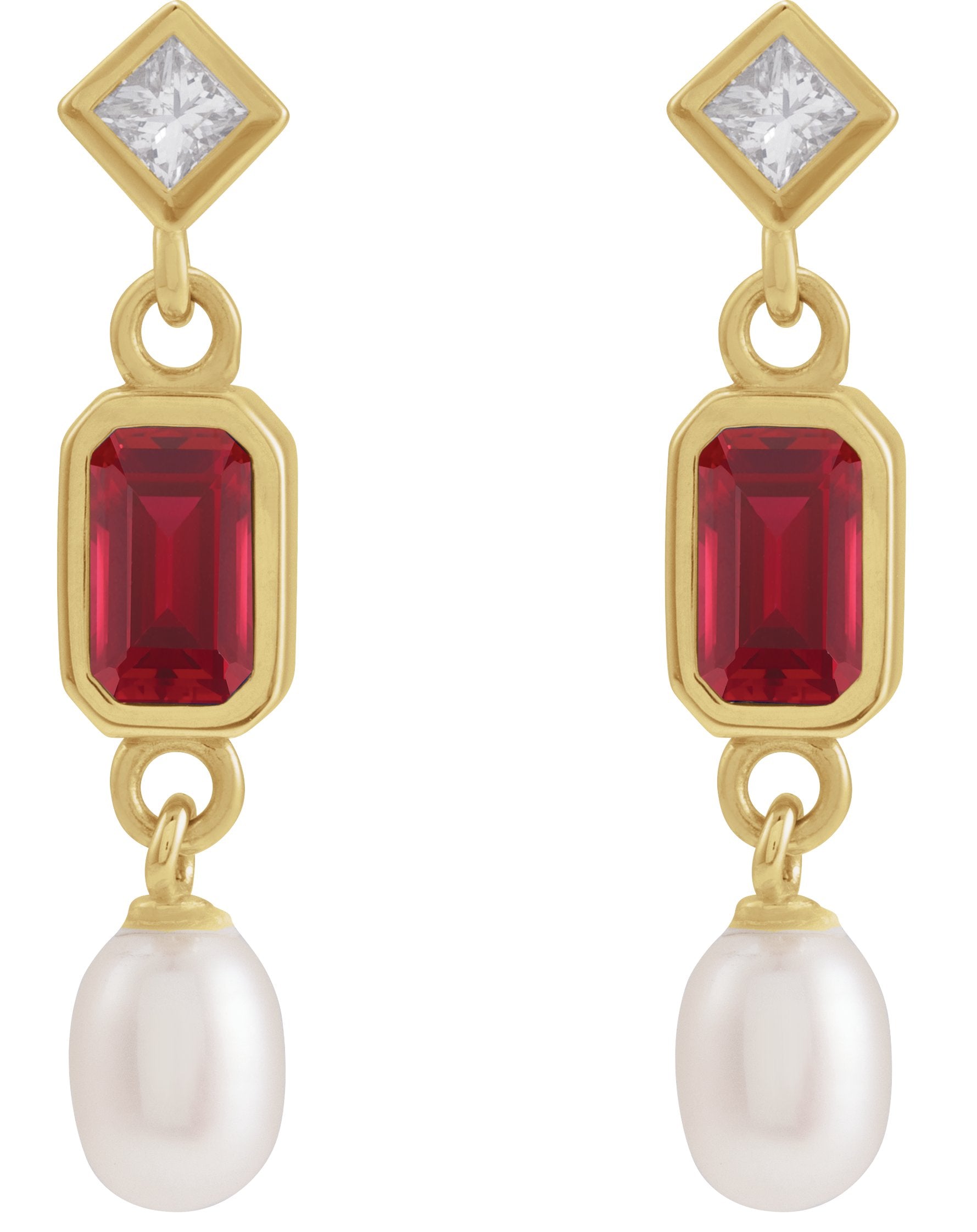 14K Yellow Lab-Grown Ruby, Cultured White Akoya Pearl & .05 CTW Natural Diamond Earrings