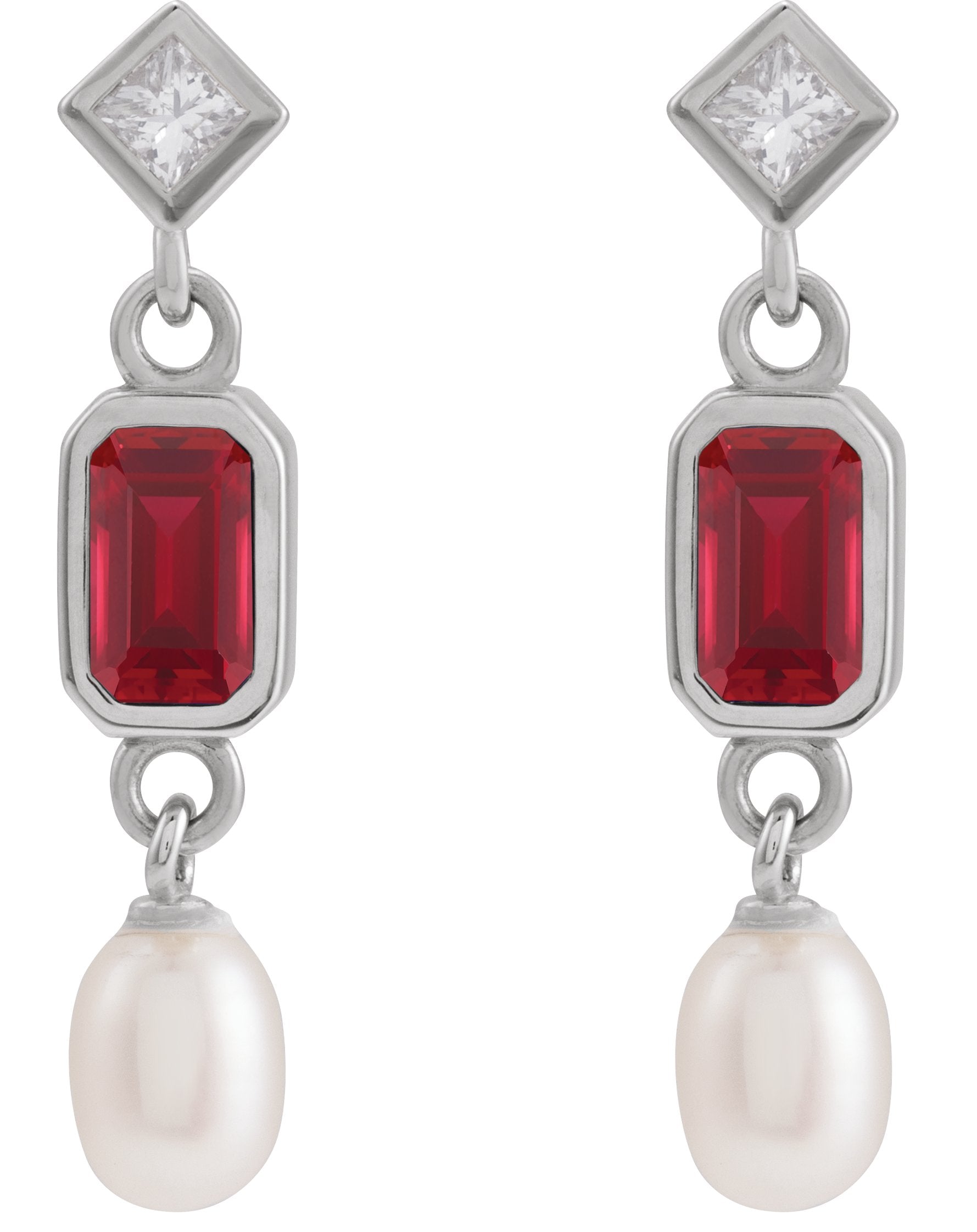 14K White Lab-Grown Ruby, Cultured White Akoya Pearl & .05 CTW Natural Diamond Earrings