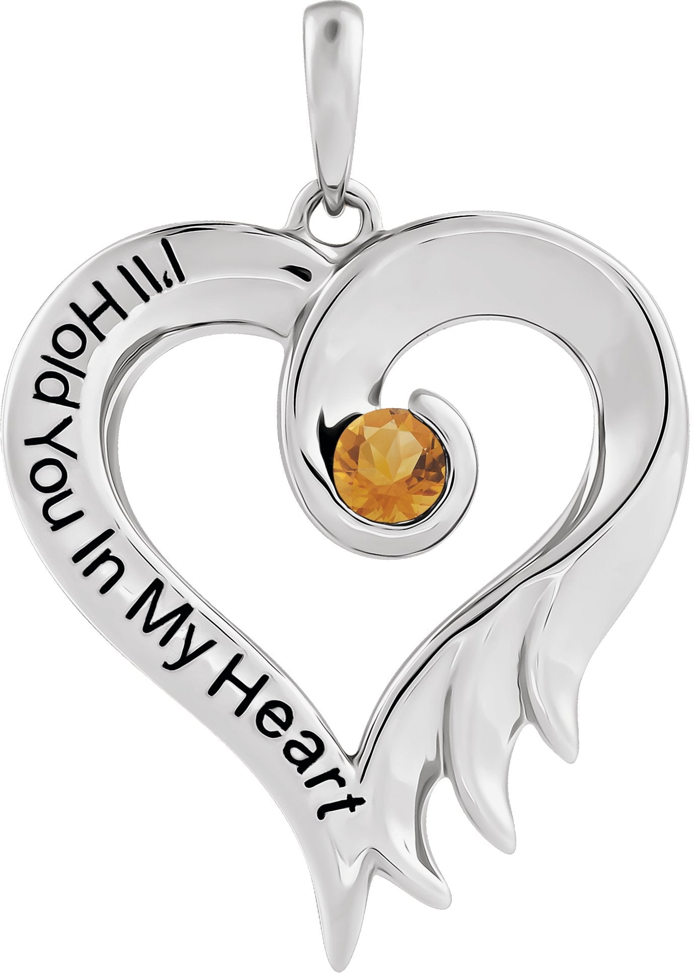 Sterling Silver Natural Citrine & Engraved I'll Hold You In My Heart Pendant