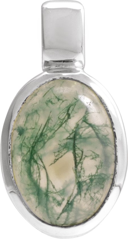 14K White Natural Moss Agate Pendant