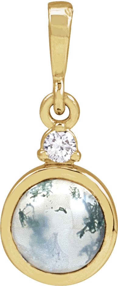 14K Yellow 6 mm Natural Moss Agate & .03 CTW Natural Diamond Pendant