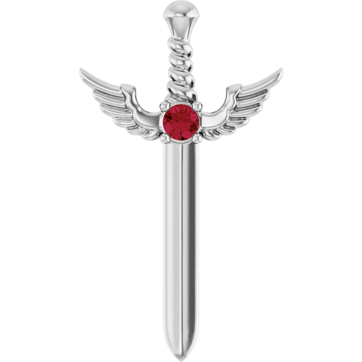 14K White Natural Ruby Dagger 18" Necklace