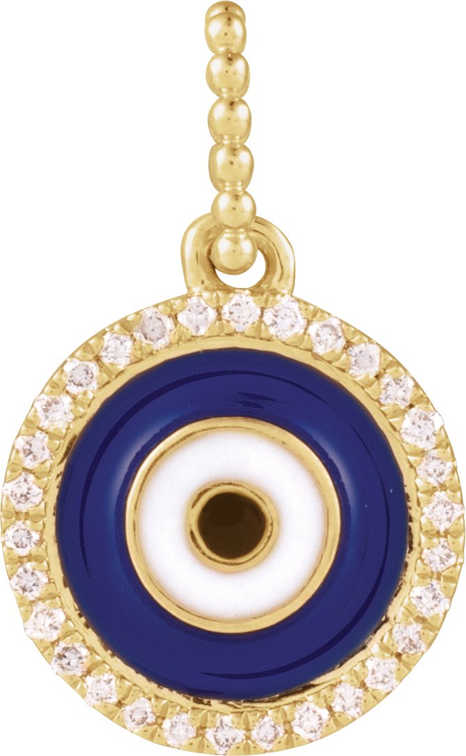 14K Yellow 1/10 CTW Natural Diamond Blue Enameled Evil Eye Pendant