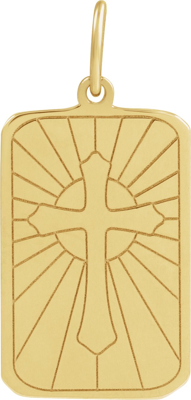 14K Yellow Cross Dog Tag Pendant