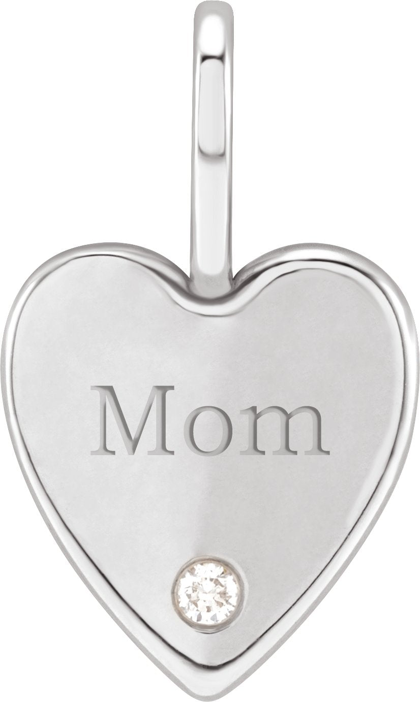 14K White .02 CT Natural Diamond Engraved MOM Heart Charm/Pendant