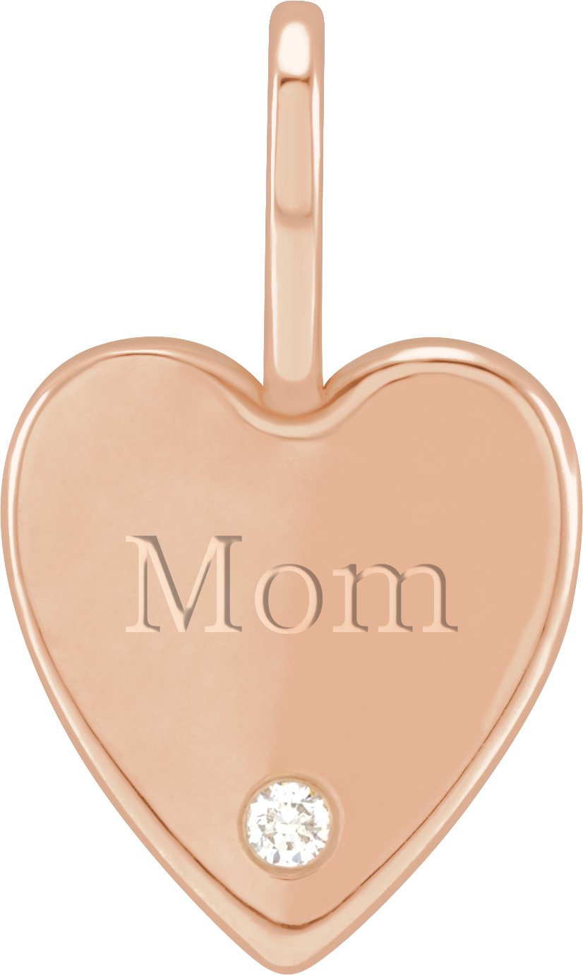 14K Rose .02 CT Natural Diamond Engraved MOM Heart Charm/Pendant