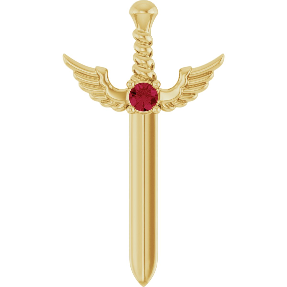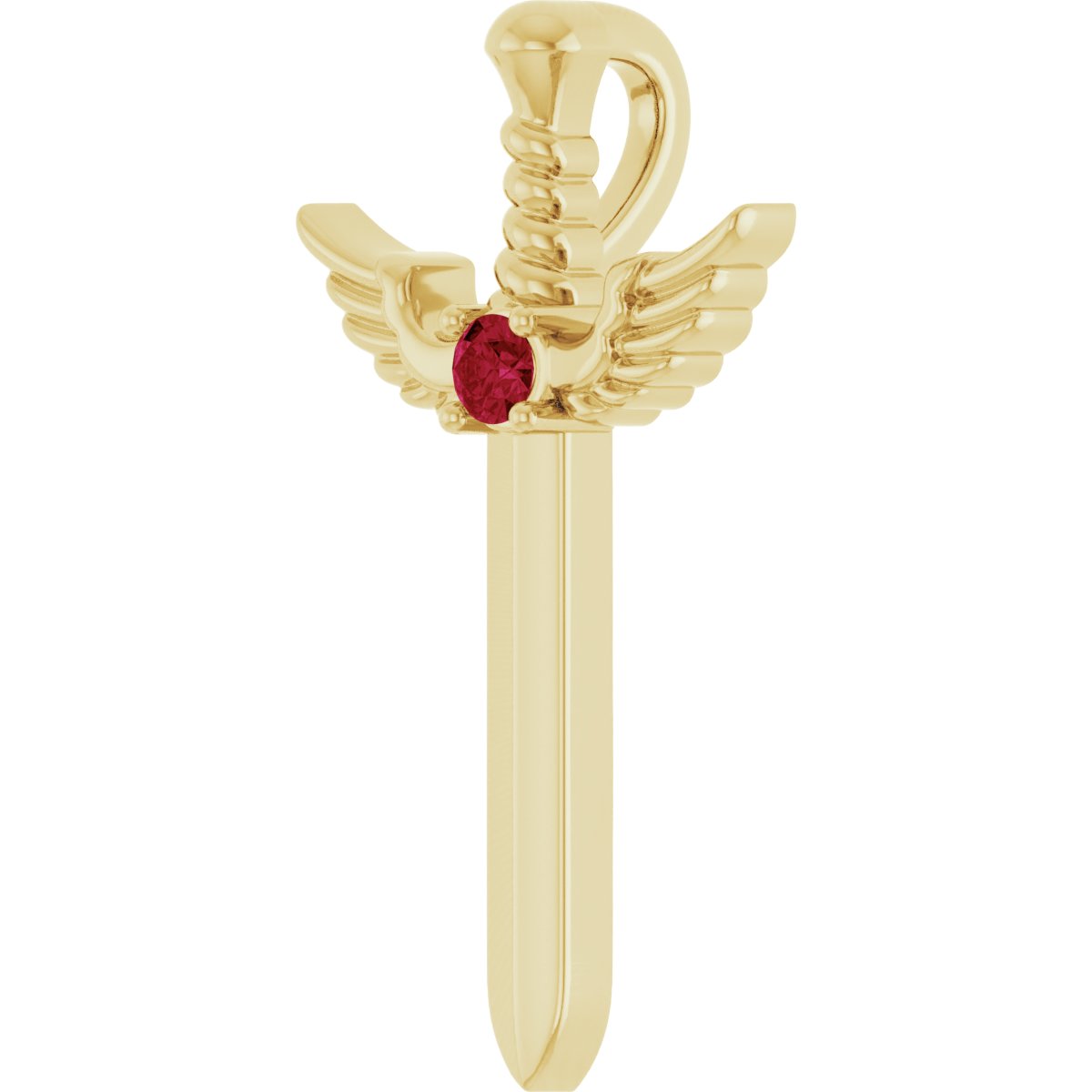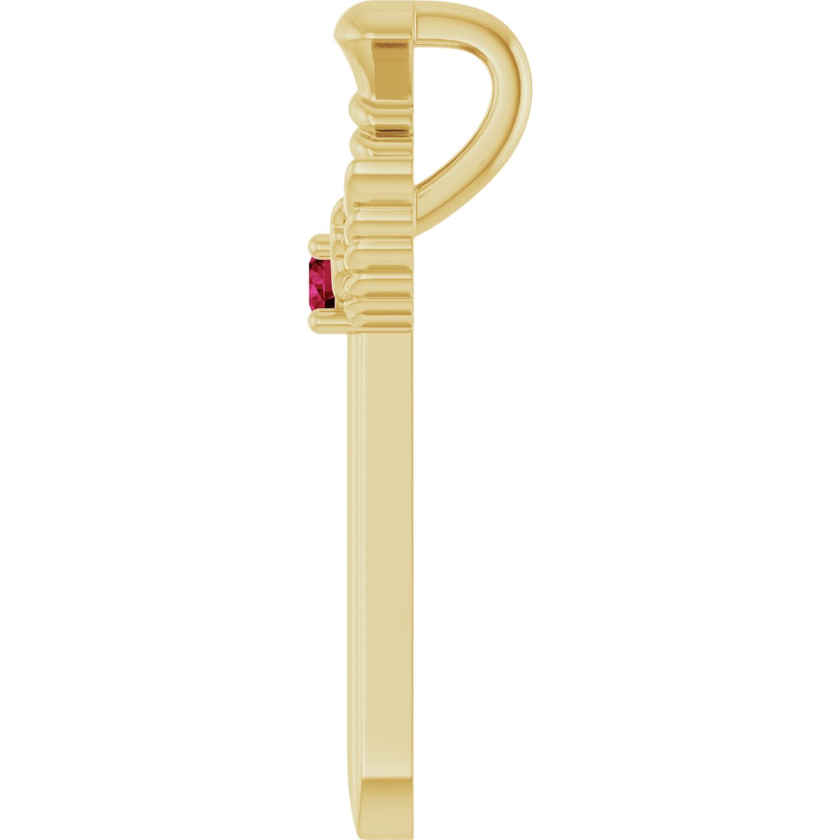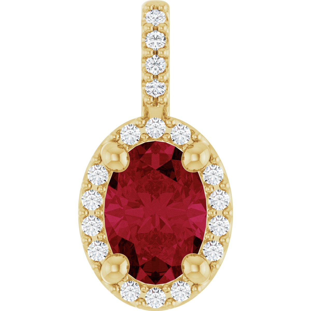 14K Yellow Lab-Grown Ruby & .07 CTW Natural Diamond Halo-Style Pendant