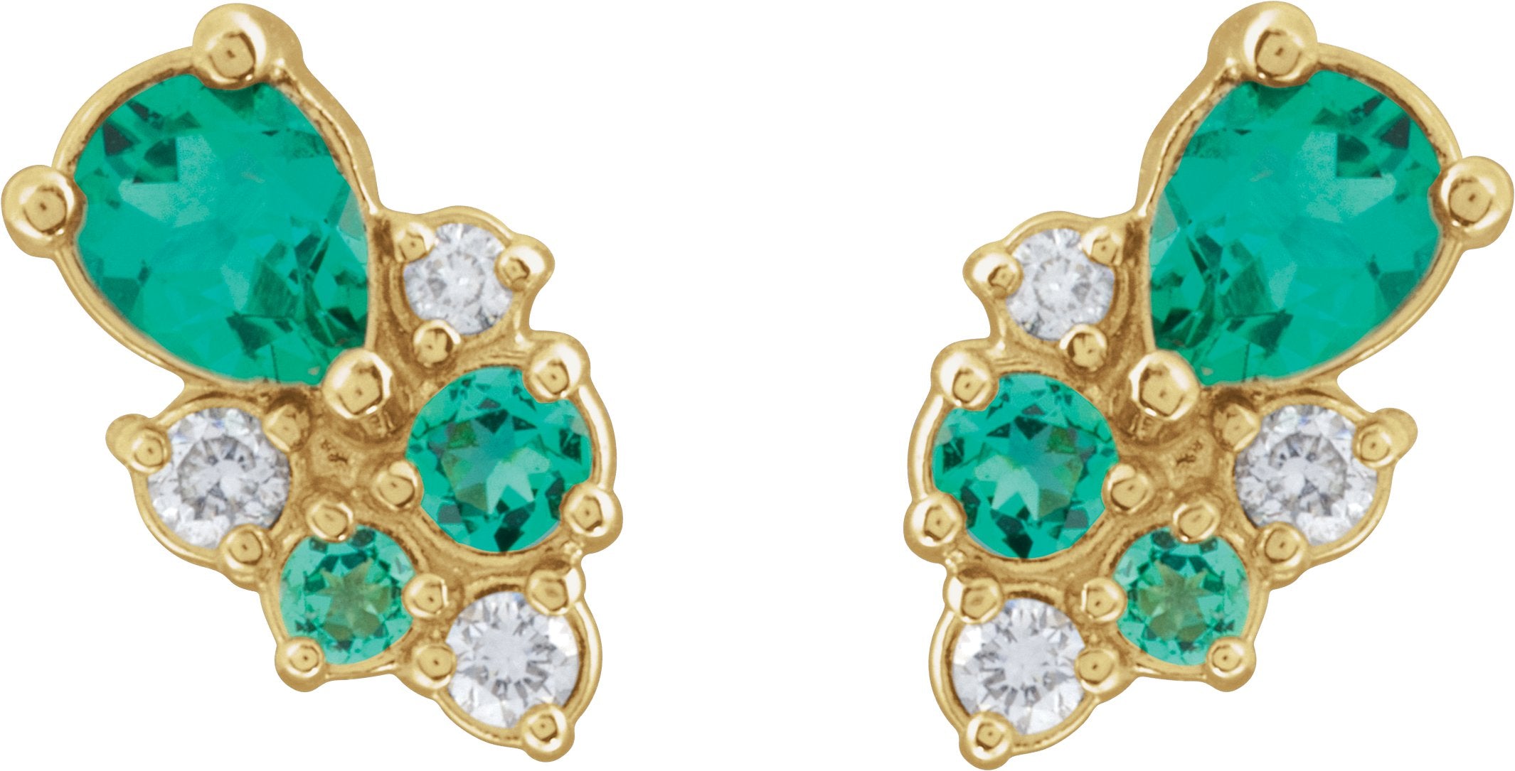 14K Yellow Lab-Grown Emerald & .07 CTW Lab-Grown Diamond Cluster Earrings