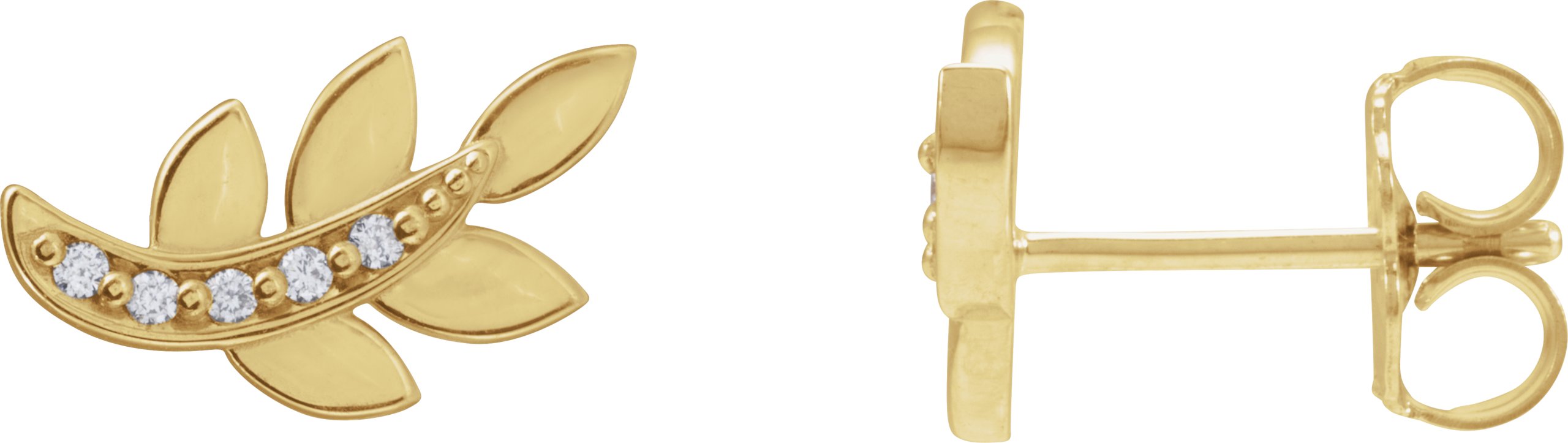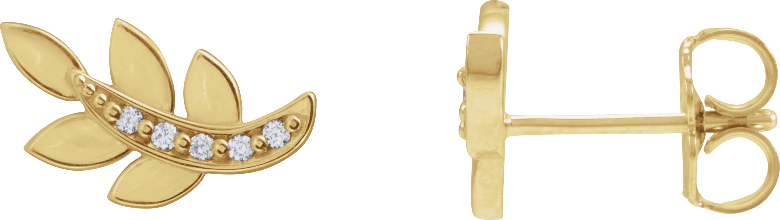 14K Yellow .07 CTW Natural Diamond Leaf Earrings