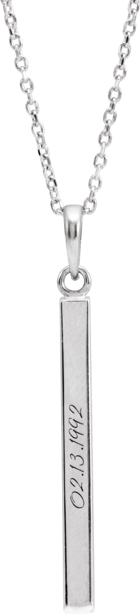 Sterling Silver Engravable Four-Sided Bar 18" Necklace