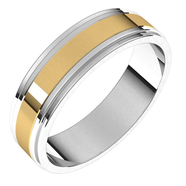 14K White/Yellow 6 mm Milgrain Inlay Flat Band Size 9