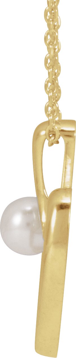 14K Yellow Cultured White Akoya Pearl Heart 16-18" Necklace