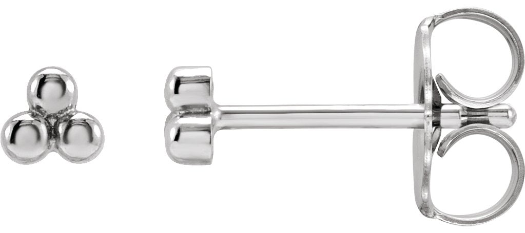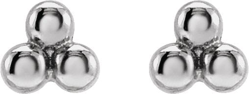 14K White 3 Beads Stud Earrings