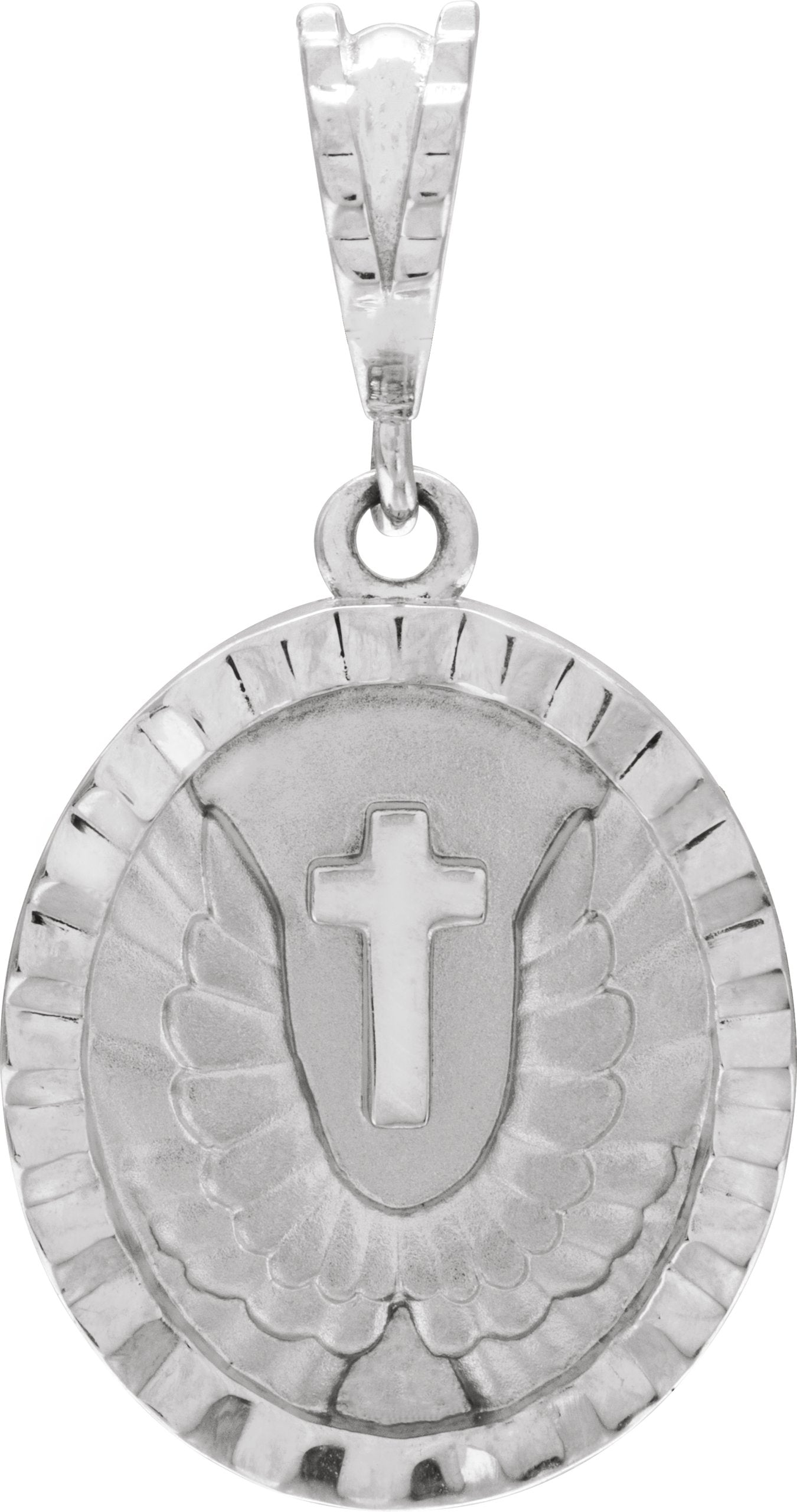 14K White Angel Wing Coin Pendant