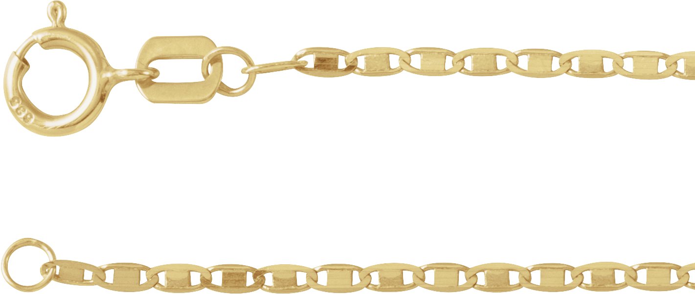 14K Yellow 1.3 mm Mirror 7" Chain