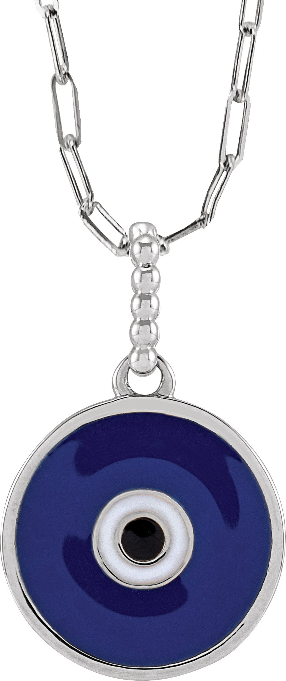 Sterling Silver Blue Enamel Evil Eye 18" Necklace