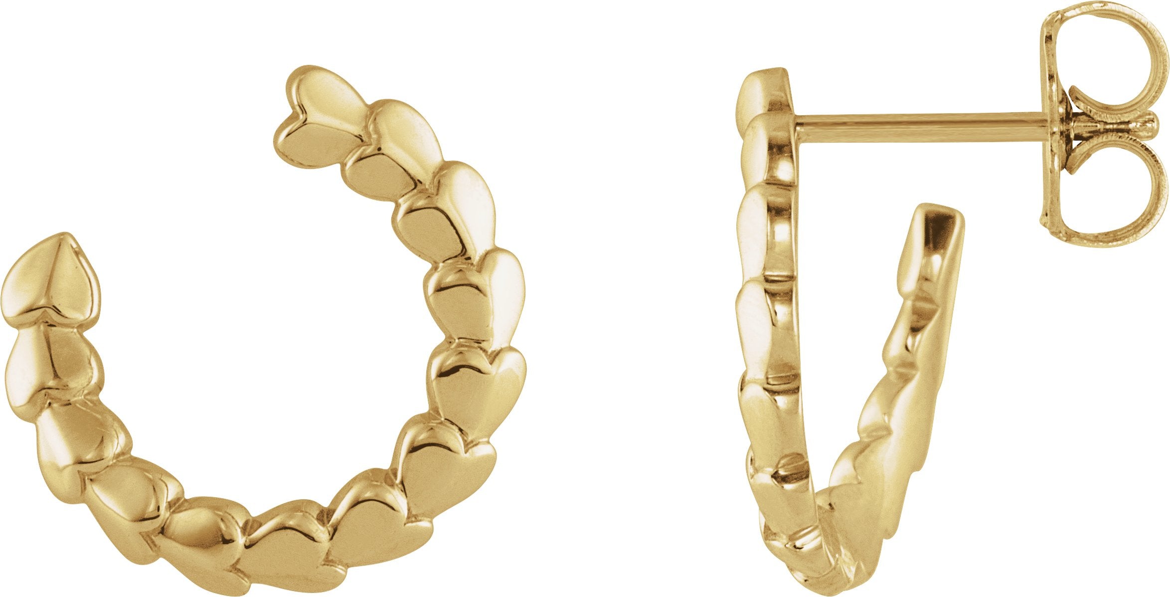 14K Yellow Front-Back Heart 14.2 mm Left Hoop Earrings