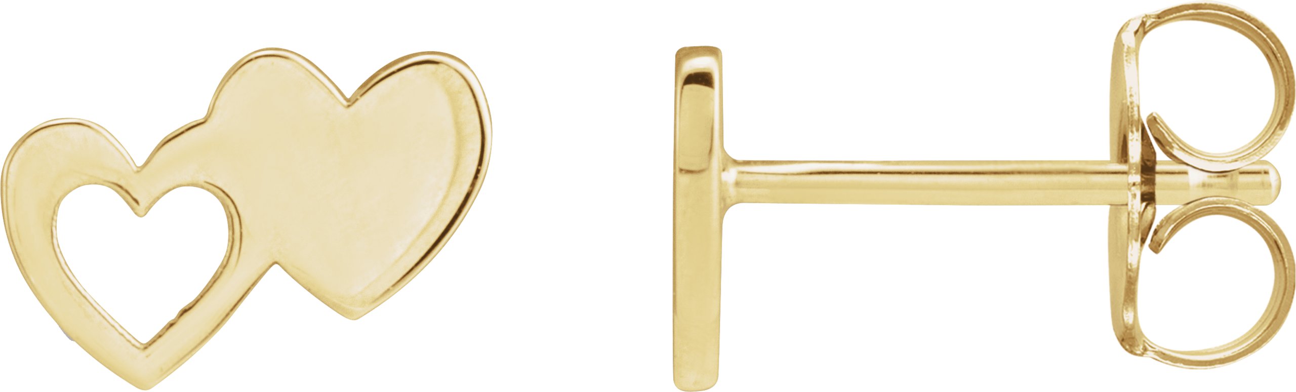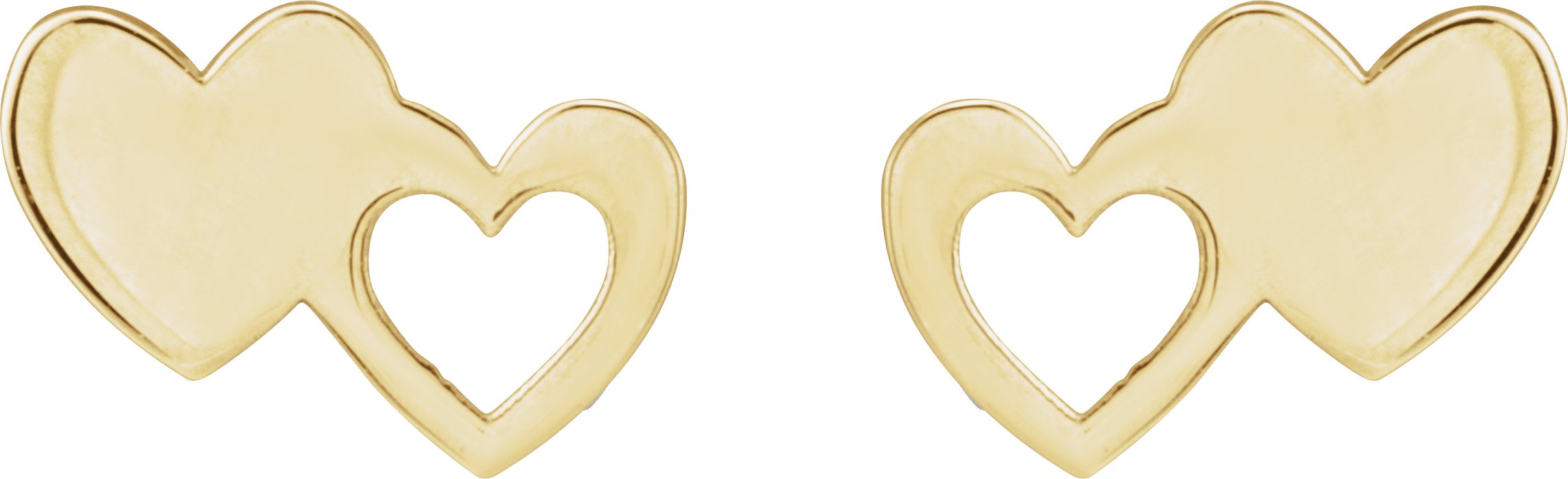 14K Yellow Double Heart Stud Earrings