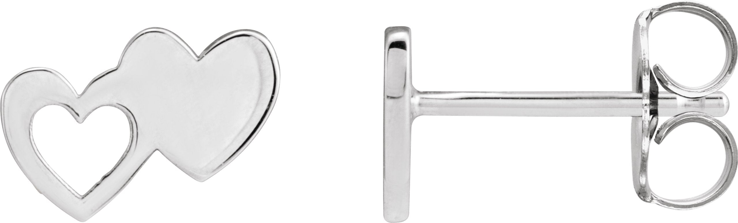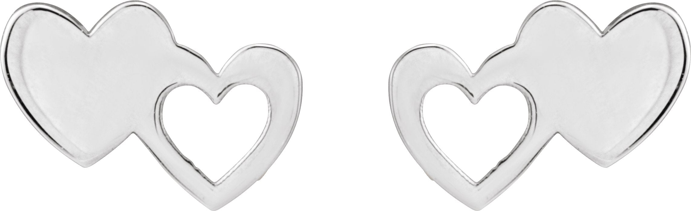 14K White Double Heart Stud Earrings